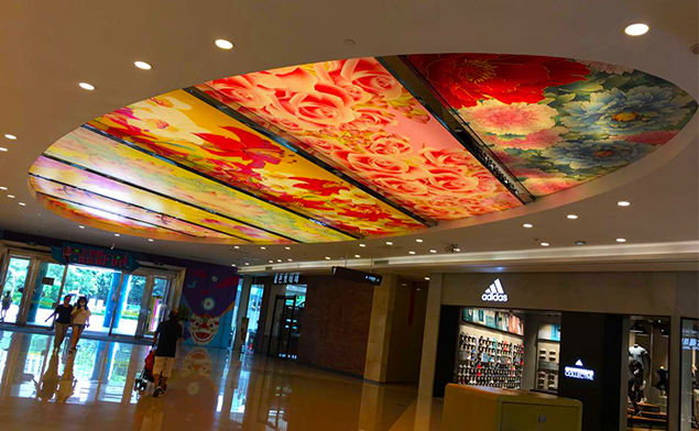 卡布軟膜燈箱不僅限于室內壁掛式或是立式的廣告,也不限于正正規(guī)規(guī)的長方形或正方形,像這種商業(yè)類的天花軟膜燈箱現在也是裝飾裝潢的新形勢,特別創(chuàng)意的廣告可以快速吸引消費者眼球.